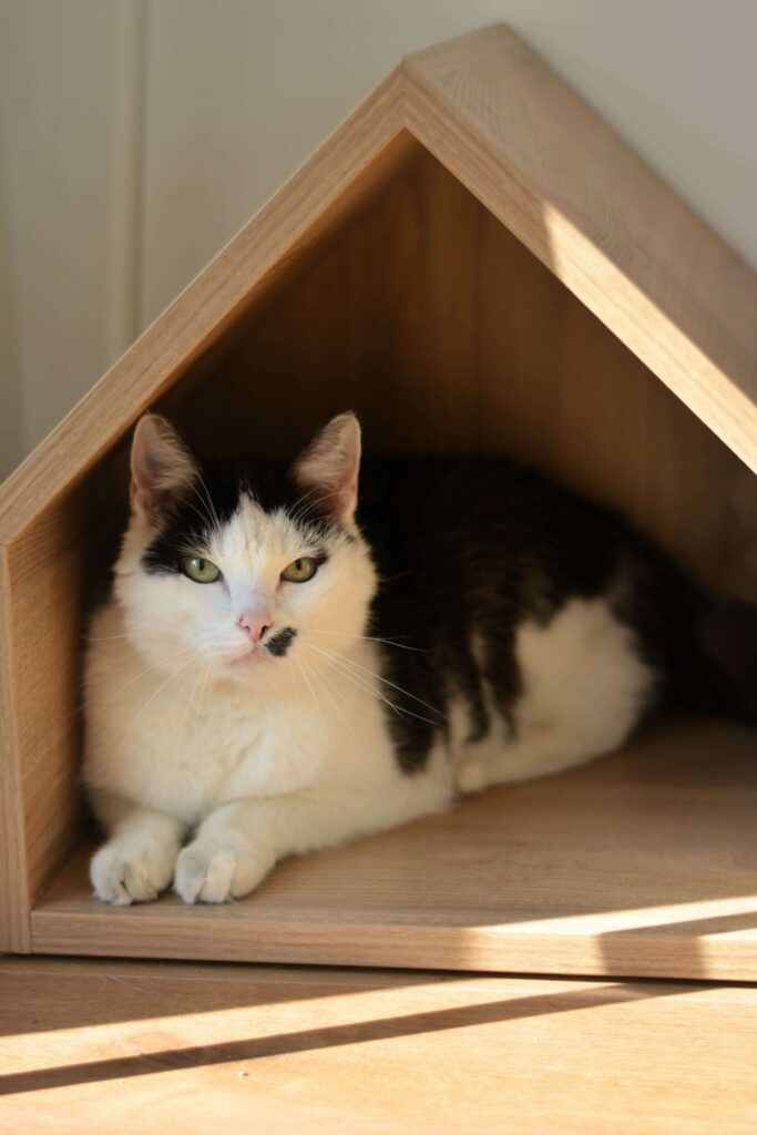 Została znaleziona z dwójką kociąt w osiedlowej piwnicy. Przyniesiona do nas na „tymczas”. Kociaki zostały wydane do adopcji, a Franczeska uwiła sobie ciepłe gniazdko u nas.